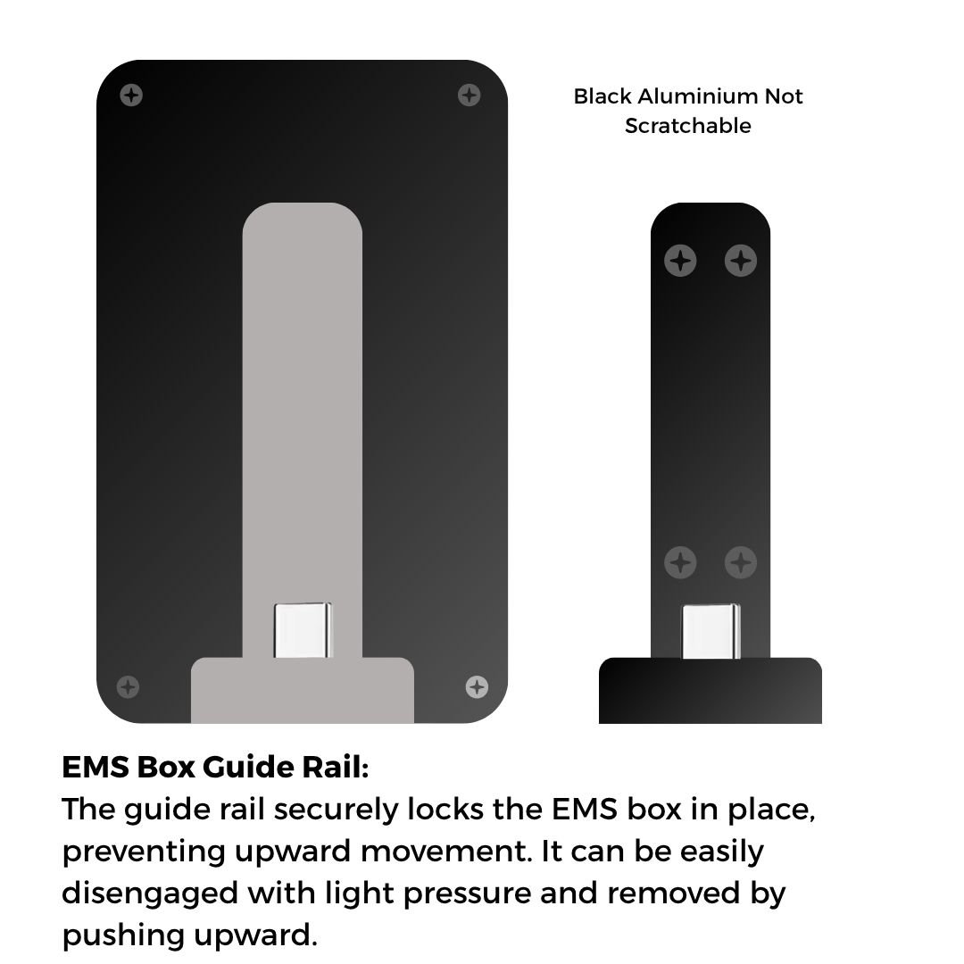 Note: The current sliding rail is provided as a basic example only. We do not want this version. The final rail should match the enclosure box in material and appearance—preferably black titanium, identical in finish, and resistant to scratches. If metal is not feasible, then use high-quality plastic that visually and structurally matches the enclosure box.